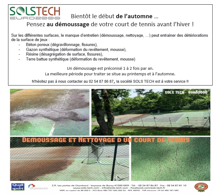 Voici toutes les informations sur le Entreprise de construction de courts de tennis SOLS TECH qui ce trouve au Imp. de Buray, 41500 Mer (41). Sur cette fiche vous trouverez les photos, l'adresse, les horaires d'ouverture, le numero de téléphone et les avis clients.Vous pouvez églement rédiger un avis si vous le souhaitez en bas de page.